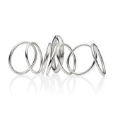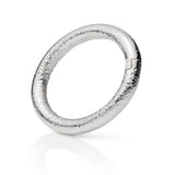 We know exactly what we like in a hinged bangle, which is why we designed and made these. A hinged bangle means a more comfortable fit on your wrist. No squeezing and tugging. No flopping down around your hand. The sterling silver tube is made specially for us in Italy and we use the heavier gauge you’d expect. The invisible hinge is crisp, precise and robust. The discreet double click safety clasp has a 9ct gold tongue. Why gold? Because 9ct gold has better tensile properties than silver and will keep its springiness. Small details, but important signs of a superior piece of jewellery made to be worn and loved for decades. Look good individually. Look great as a set. Large hammered tube bangle, 5.7cm internal diameter, 9mm wide, hinged.