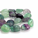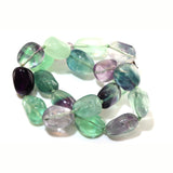 Fluorite is one of those gemstones that actually look like gemstones. It comes in shades of purple, blue and green (the fantastically expensive Blue John is just deep blue Flourite). Not incredibly rare, but hard to find the best quality with glass like transparency and intense colours. I like to think of it as a few drops of ink in pure ice. Some years I am lucky. Some not. Curious fact, some pieces of Fluorite absorb sunlight and re-emit it, glowing in the dark. It is where we get the word fluorescence from. It is hard not to smile when you catch sight of it in the mirror. When you wear it, you own the day. 20/25mm nuggets and 48cm long with a large easy to use sterling silver hook clasp.