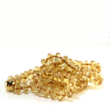 Citrine is a type of quartz. Warmer than lemon quartz it has a particularly golden tone. These are rather unusual 8.5mm faceted rondelles. In fact, quite an unusual cut of rondelle. A really pleasing thing to wear that works with Summer and Winter wardrobes. Gilded sterling silver magnetic clasp. 53cm long.