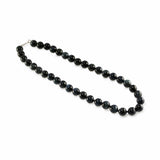 Unusual for two reasons. Firstly, Hawk's eye is the far less common blue variety of Tiger's Eye. Secondly you don't see it as beads very often. It has a very subtle, lustrous look. That cat's eye chatoyancy effect makes it appear like black pearls at a glance. But get closer and you begin to pick up more detail, silky clouds of movement. It reminds me of the way you notice holograms on things when they move. Well named; you look at it and sometimes it seems to glimpse back. The hard to photograph colour is a sort of silvery grey/blue/black that is hard to pin down. Hawk's Eye is a form of quartz, so it will look as glossy and perfect in decades as it does today. Very hard wearing and a dark necklace actually goes with just about anything. 44cm long with 10.5mm beads. Sterling silver hook clasp.