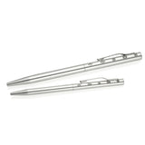 A smart silver pen with feature hallmarks. Made right here in England. A gift that anyone will appreciate. 14cm long. Takes a standard Parker refill (2401.25.42-1) or a WH Smiths proprietary version. Slight second as there is a mark in the silver at the top of the silver clip, not very noticeable. Last one.