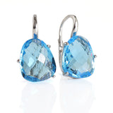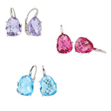 The nice thing about crystal glass is that you can achieve a clarity and colour intensity that is a little stronger than all but the most expensive examples of what nature can provide. We love this new design with its chequer cut facets. Doing it in high quality crystal with sterling silver keeps it within the realms of affordability and wearability. We did consider using lab grown gems, but the price would have meant they would spend most of their life in a drawer than in your ears. Pretty and beautifully made Italian everyday earrings an everyday price. 22mm long overall. If you have small holes in your ears these may not be suitable as the hooks are thicker than a normal stud earring wire.
