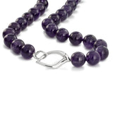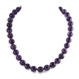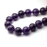 When we are on our buying trips, we see a lot of Amethyst. And I mean, thousands of rows. Dark, pale, natural, treated, from Brazil, from Africa.... And a bit like supermarket shopping, you build up a very good sense of quality and value. Look long enough and eventually you will come across a bargain. This is really beautiful quality Amethyst. The colour is strong and transparency good given that we are looking for material that shows its natural origin with inclusions, internal structure and changes in tone that catch the plays of light. Although it was far from inexpensive, it was underpriced for large beads of such good colour. Probably old stock brought out for the gem fair and the price was never updated or just human error on the price ticket. It happens. Still, get a bargain, give a bargain is our philosophy. A classy, simple necklace that you will just wear and wear. Hand knotted 12.5mm beads, 46cm long with sterling silver clasp.