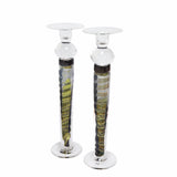Peacock British Art Glass Cane Candlesticks (Pair) SAVE £150