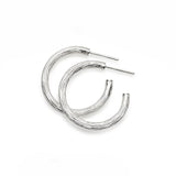 These bespoke Italian sterling silver hoops are light to wear and beautifully finished. At 2.5cm diameter they are an ideal size. The textured finish has a subtle gleam so they sit well with any silver jewellery.